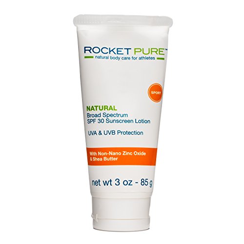 BROAD SPECTRUM: All natural mineral sunscreen helps prevent sunburn and sun damage during outdoor sports activities. SPF 30 Broad spectrum UVA & UVB sun protection, with non-nano natural mineral zinc oxide. Absolutely NO dangerous chemically active sunscreen ingredients like oxybenzone or octinoxate. "White Hot Sunscreen With Zinc Oxide" by Rocket Pure.