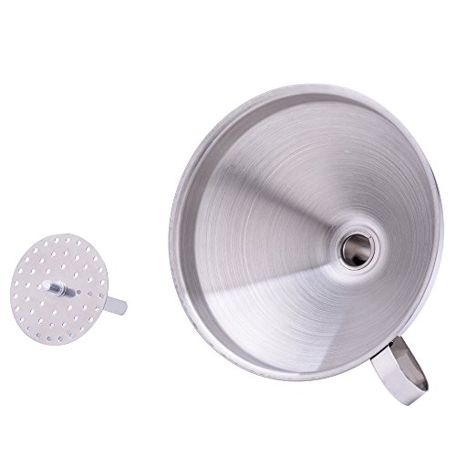 - EASY TO CLEAN AND STORE: This stainless steel funnel is easy to store save space, the ergonomic handle for hanging in your kitchen cabinets. It is easy to clean up after use. Just put it into dishwasher or simply wash with soapy water.