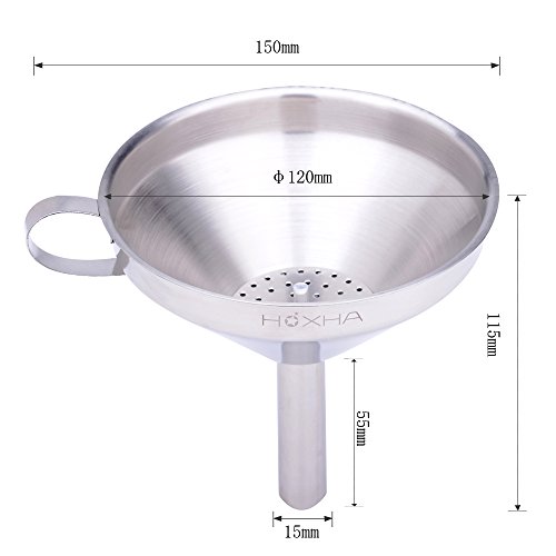 - STAINLESS STEEL FUNNEL - HOXHA's metal funnel is made from food grade stainless steel that not only gives the products a bright, clean finish, it also makes them durable through years of use. Thanks to high-quality materials, you can count on these funnels to deliver long-term performance and decades of convenient pouring. Make sure you have a mini funnel that will last with this fantastic set and the kitchen will be making great meals for everyone!