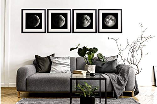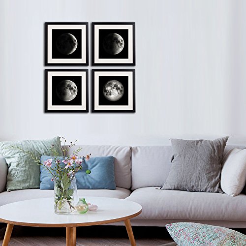 -. Title : White Matted Black Picture Frame Moon Poster Canvas P.R.Ints Black And White Wall Art Home Decor Artwork For Living Room 4 Piece Crescent Half Full Moon Phases Framed Painting P.R.Inted On Canvas