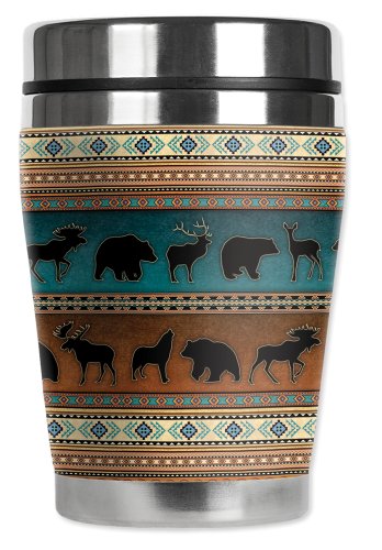 Mugzie Indian Blanket "Mini" Travel Mug with Insulated Wetsuit Cover, 12 oz, Black