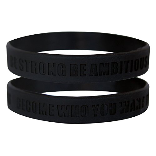 - Includes 1/2 inch wide debossed wristband with a motivational quote, Adult (standard) size. Available in singles or bulk at discounted cost