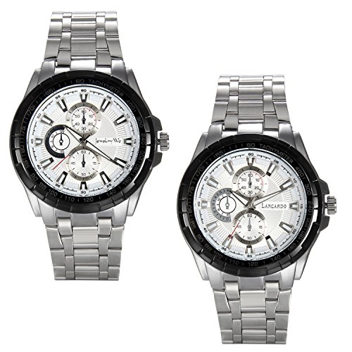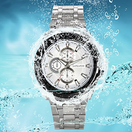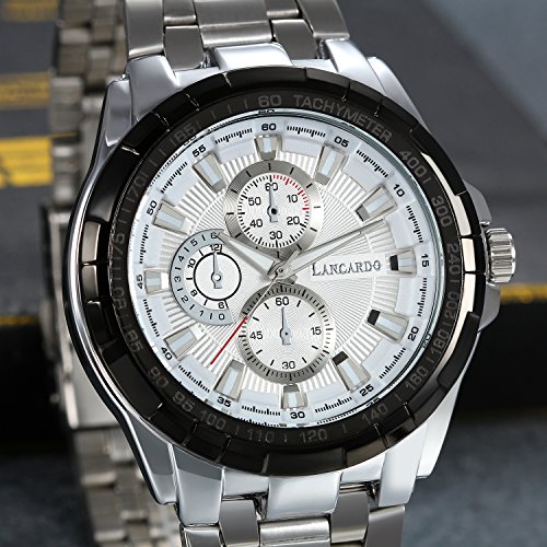 -. Title : Lancardo 腕時計メンズ 日本製クオーツ ステンレスバンド 3atm防水 真空電気メッキ メンズウォッチ ビジネス カジュアル スポッツ ホワイト