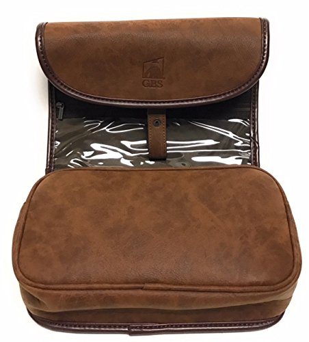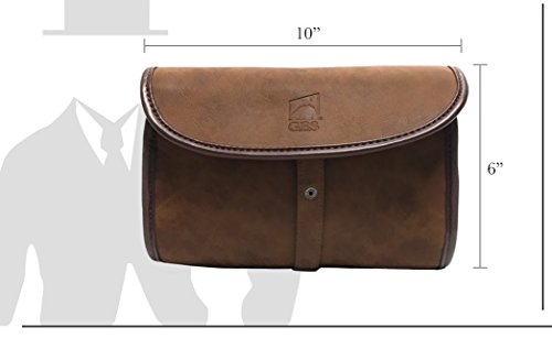 Men's Leather Dopp Kit - Travel Roll Up Toiletry Bag With Hanging metal clip - Great Gift for Men
