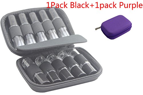 Hardly EVA Material Essential Oil Carrying Case Holds 10 Bottles With Neoprene Divider - Size 5ML, 10ML Roll Ball Bottles Perfect Fits For Purse Makeup Multiple Colors (1Pack Black+1Pack Purple)