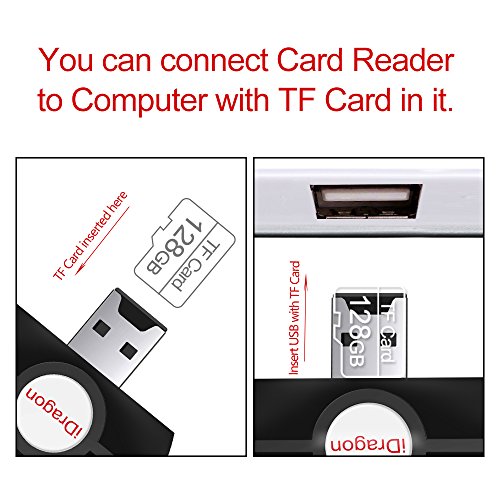 -. Feature : Fit all your devices with three interfaces: Lightning connector is for iOS devices; Micro USB connector is for Android devices; USB connector is for computers/Mac. / No Storage Inside the Card Reader. Support 8G~128G SD and TF card(Memory Cards are NOT Included). Reading speed: 20~40M/S; Writing speed: 11~15M/S. / Easily stores and transfers--You could please download the FREE APP named "iUSB Pro" from app store for IOS system. Android Smartphones do not download app, please enter to the phone "file manager" to operate. / While in travelling, you can send the photos that you took with camera via card reader from SD card to your cell phone and share the beautiful moments of your journey. / [90-Day Warranty] 90-Day No Quibbles Money Back Guarantee and always be satisfied customer service. Any questions, please post it on "Customer Questions and Answers" Part below the page, you'll get the answers soon.