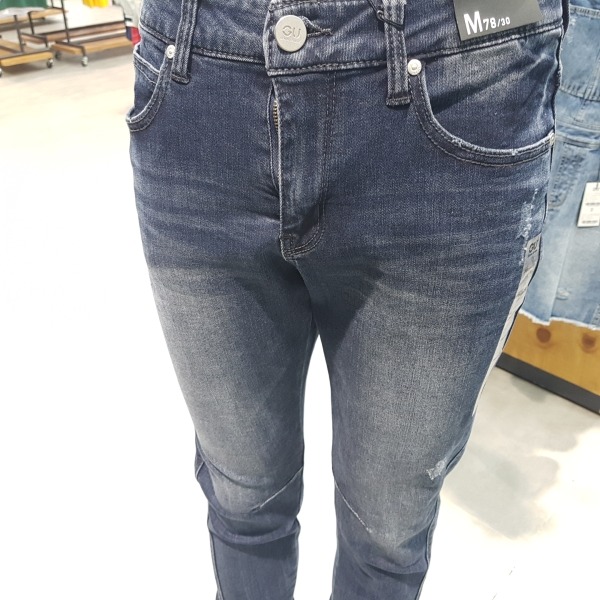 D톤의 엠보 라이더 팬츠.엠보워싱 가공으로 입체감을 살리고 워싱은 깔끔하게 작업하여 데일리로 착용가능한 아이템.