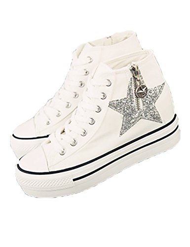 -. Feature : 見た目は普通の厚底スニーカーですが、前は2.5㎝、後ろは6.5㎝のインヒールで足長効果抜群です。 / ハイカットスニーカーだけと、ファスナーがついているので脱ぎ履きが楽です。 / キラキラの大きな星とファスナーチップの星がアクセント♪ / カジュアルだけどインヒールで美脚効果があり、通勤・通学・旅行のほか、ショッピングやテーマパークなど、長く歩く時にもいいかも♪ / 35:22.5cm 36:23cm 37:23.5cm 38:24cm 39:24.5cm 40:25cm 海外製品につき縫製など甘さや微細な汚れがある場合がございます。また外箱には傷・凹みがある場合もございます。