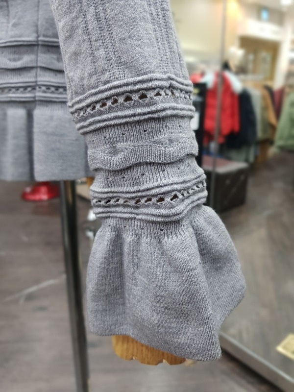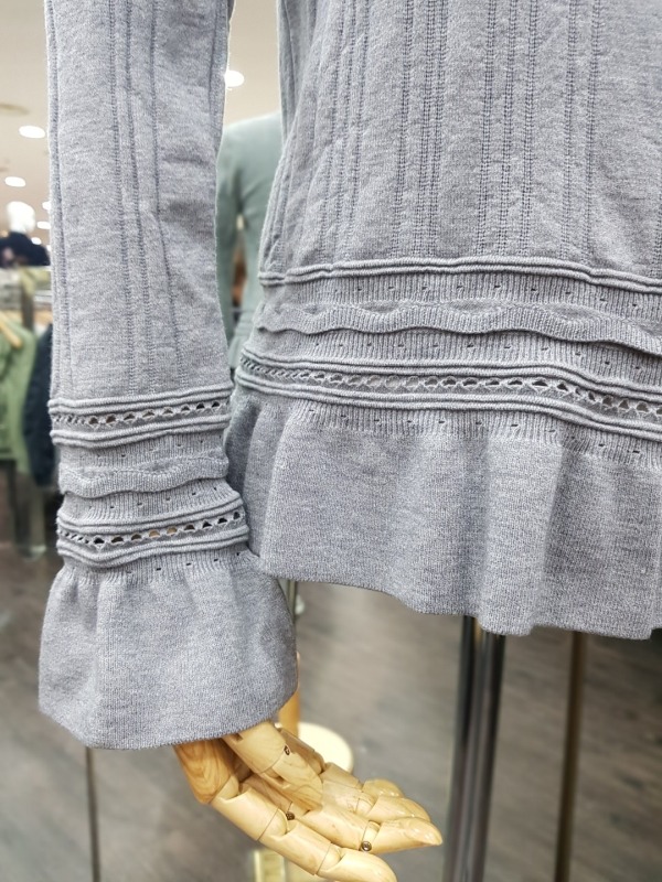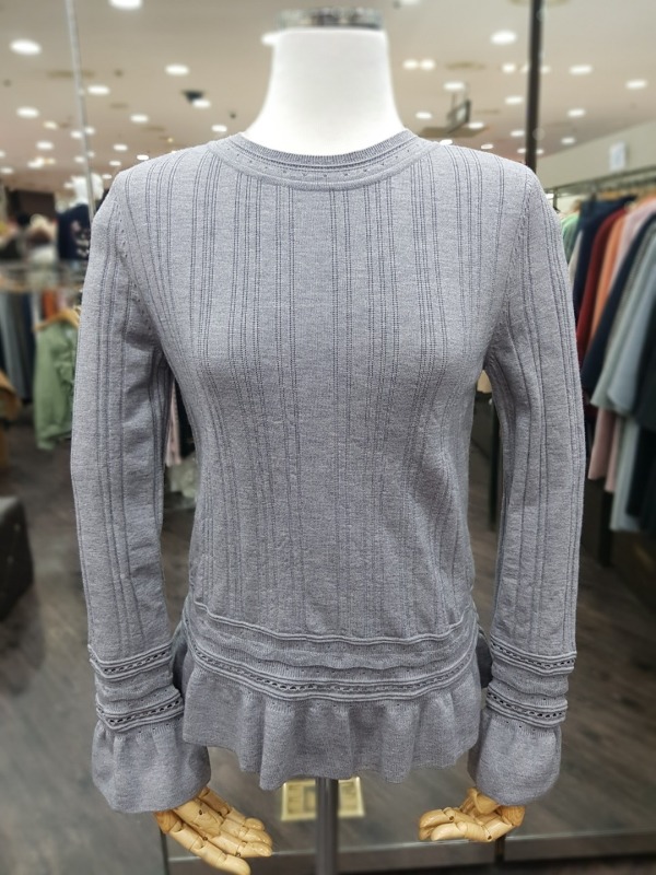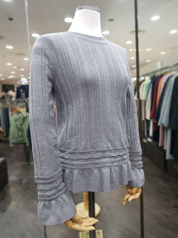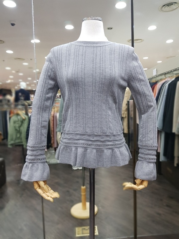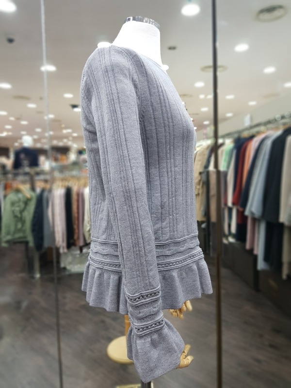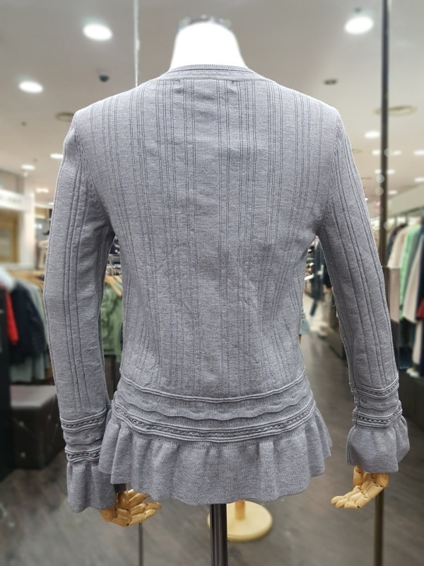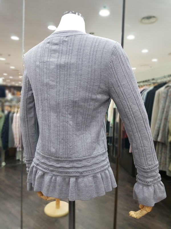 솔리드한 컬러감 및 밑단의 프릴 디테일이 돋보이는 니트로 전면의 멋스럽고 다양한 조직감이 포인트인 제품입니다