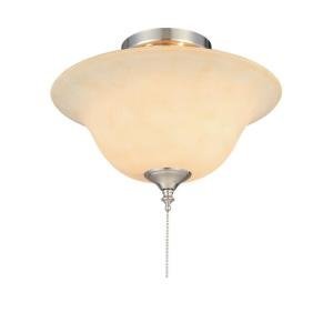 The Hampton Bay convertible light kit can mount to most ceiling fans that have a switch cap with a threaded hole in the middle. This light kit has a Tea Scavo glass bowl and includes (2) 13W CFL bulbs for energy efficiency. This light kit will coordinate with up to 4 different finishes which include BN, WH, Bronze and Brass. Not only can this be installed onto a ceiling fan, but it can also be used as a semi-flush ceiling light.