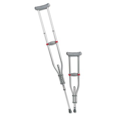 Studio : MEDLINE INDUSTRIES, INC. Publisher : MEDLINE INDUSTRIES, INC. Binding : Office Product Product Description Medline aluminum crutches are one of the strongest on the market. Aluminum tubing and a special riveted footpiece provide stability. Like having three crutches in one?youth, medium and tall. Fits users' heights 4'7"" to 6'7"". Features a red-dot grip adjustment mechanism. 300-lb weight capacity. Adjustability: 4' 7"" to 6' 7""; Size Group: Youth; Adult Medium; Adult Tall; Material(s): Aluminum. 0