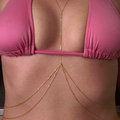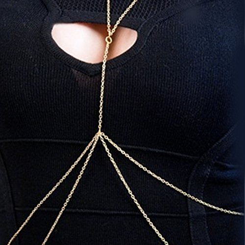 Nero body Accessories with Rhinestone, Chic four-layer Chains, Choker body Chain for Women (Gold)