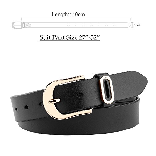 -. Binding : Apparel -. Brand : Whippy -. Color : Black -. Department : womens -. Feature : Fit size - Total length 43.3", suit for pant size 26"-30" (US size 6-14). Strap width 1.3". There are 7 holes on strap for adjustment. If necessary, you can punch more holes for perfect fit. -. Model : JGO28 -. PackageQuantity : 1 -. ProductGroup : Apparel -. ProductTypeName : ACCESSORY -. Size : Suit Pant Size 28"-32" -. Title : Whippy Women Casual Leather Belt for Jeans, 1.2 Inch Wide with Golden Buckle
