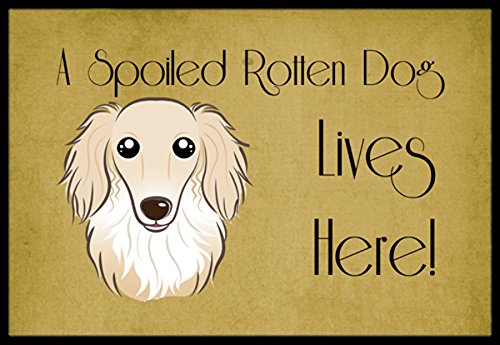 Caroline's Treasures BB1460MAT Longhair Creme Dachshund Spoiled Dog Lives Here Indoor or Outdoor Mat, 18 x 27", Multicolor