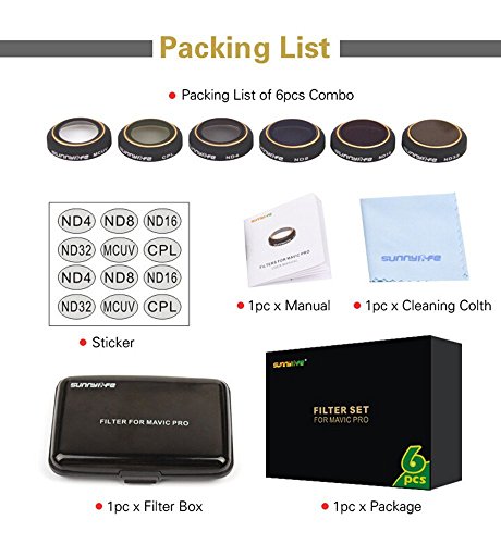Drone Fans 드론훈Mavic Pro렌즈 필터 악세사리HD nd4nd8nd16nd32CPL UV필터 세트for DJI Mavic Pro드론6팩
