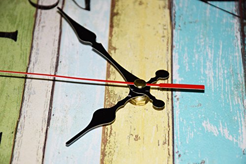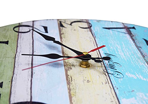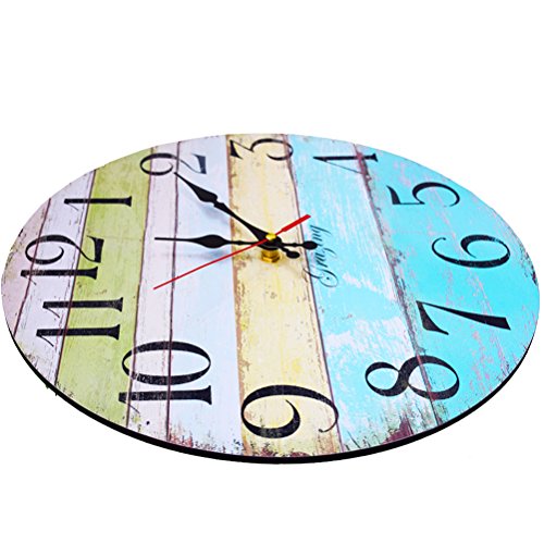 Studio : Grazing Publisher : Grazing Binding : Kitchen Product Description Description: This is a retro styled analog wall clock made from wood MDF with paper cover. This clock will add charm to any room in your home. There is a plastic shell casing behind the clock for batteries. Only one AA battery is required for this clock (not included). This vintage wall clock can be a good gift at housewarmings, weddings, and social gatherings. Instruction: 1.There is an instruction in the shipping box ,at the same time, an instruction picture in the last image in the website,if you have problem with the clock ,please fix hands set with the instrcution. 2.The clock is unframed and no glass face as the cover.If they touch each other,you can adjust the hands to avoid the hands touching.If the hands drop down,don't worry,they are just loose,just press hands tight on the core shaft to make the hands parallel,then the hands will not drop and will keep time. 3.Sometimes the movement is not work just for the wrong place of the second hand.The red second hand is too deep or too shallow will effect the movement.You can pull the red second hand out and then add it again,then clock work well.