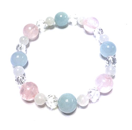 -. Title : 【M*alline マリン】 恋愛 幸運 アクアマリン 天然水晶 ローズクォーツ ブルームーンストーン 内径16cm 天然石 パワーストーン ブレスレット 浄化 水晶 交換紐 プレゼント