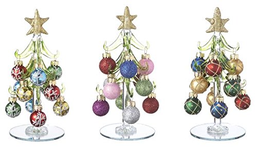 Ganz Blown Glass 6" Tall Christmas Trees with Ornaments Set of 3 EX29351