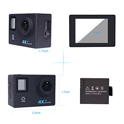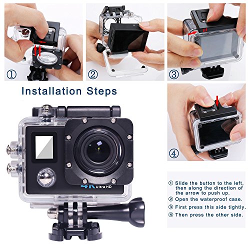 Durable and Waterproof Case: If you are a fan of water sports, this action camera is just tailor-made for you. The waterproof case keeps the water away from the camera. All buttons can be operated underwater. You can take it even diving up to 30 meters!