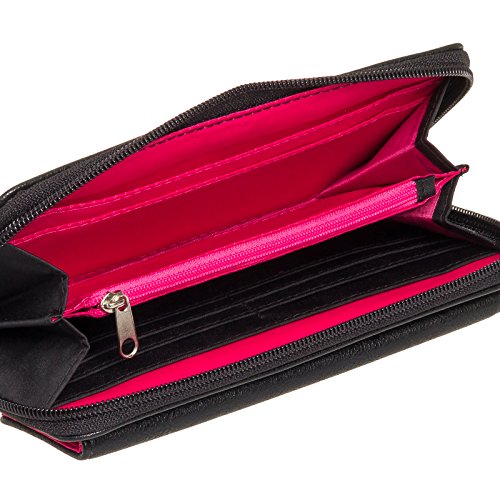 -. Feature : SAFE KEEPER RFID LINING - Most modern credit and debit cards feature integrated RFID technology for quick-paying convenience. Unfortunately, "electronic pick-pockets" have the ability to simply scan the outside of your wallet, stealing your personal information. This wallet features built-in RFID blocking protection that will shield your credit card, passport, and driver's license information from being pulled or even deleted by electronic thieves. / ORGANIZATION - Snap closure compartment opens to reveal 12 card slots, 2 slip pockets, and thumb-glide ID window, perfect for holding everything within easy reach. / ADDITIONAL STORAGE - Double down on your organization with even more storage space! The large zip pocket features 6 additional card slots, 3 bill compartments, and larger storage section divided by zippered coin pocket. / VERSATILE - Sleek clutch styling makes this wallet the perfect, most versatile accessory. Carry it alone, or drop it in a purse for everyday use - it's ready to go whenever you are! / PRODUCT SPECIFICATIONS - Wallet measures 7.75" x 4.25" x 0.9"