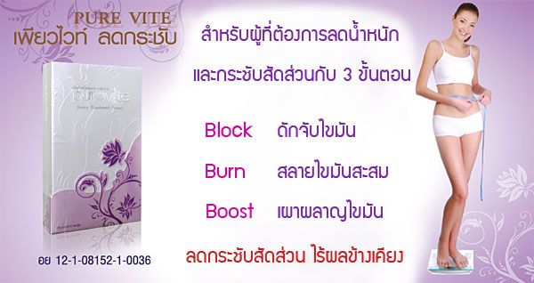 Pure Vite Slimming Dietary Supplement Helps Lessen Unwanted Weights and Firming up Your Body in 3 Processes 1. BLOCK - Cactus: Effective on fat filtration, plus with natural fiber famous in excretory system - Garcinia Hydroxy Citric Acid: Pauses flour and sugar transformation. Helps stop hunger. - Chromium Amino Acid Chelate: Prevents the transformation of sugar into fat. Also, it helps blocking new fat creation, decreases old fat, and turns fat to be body muscles.