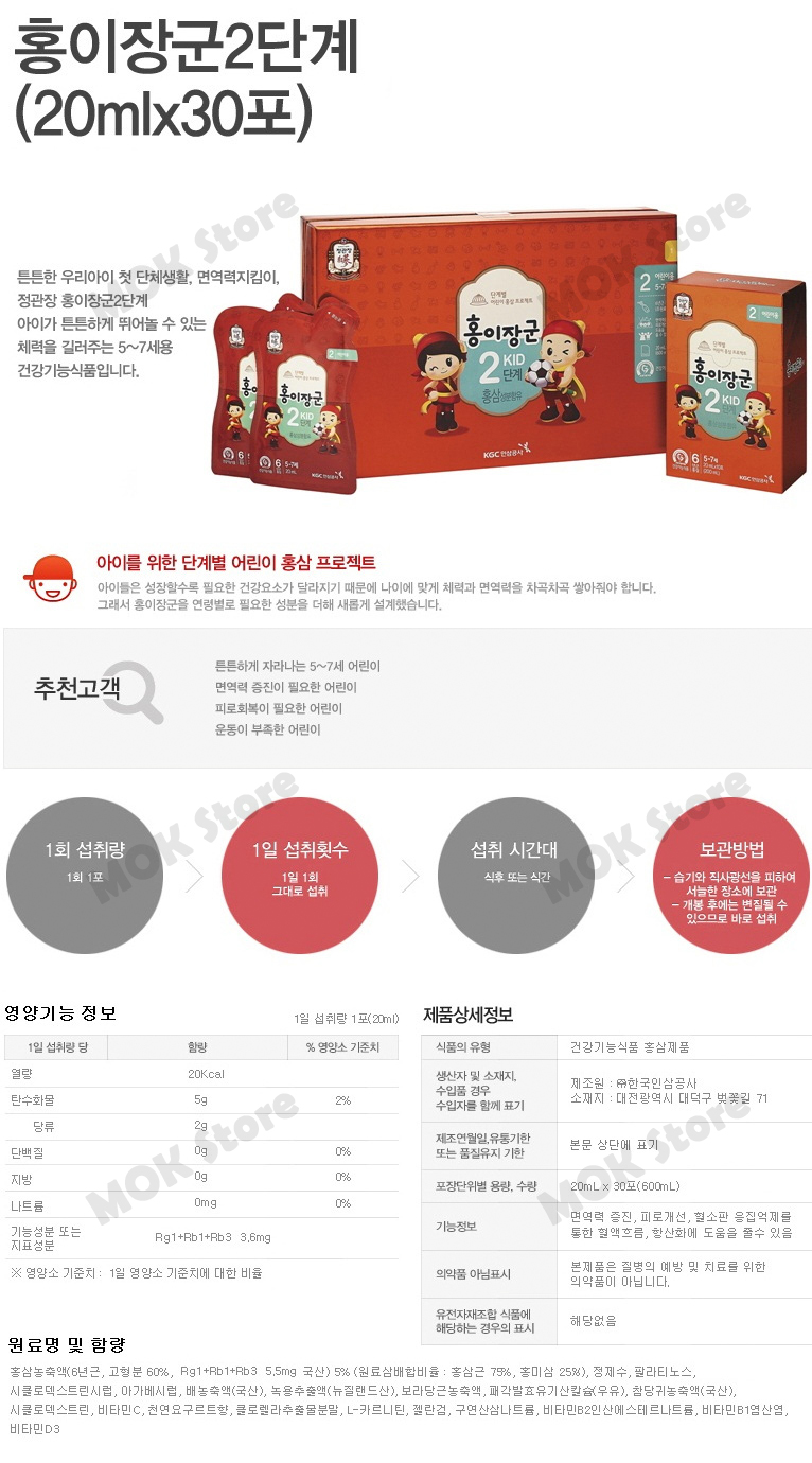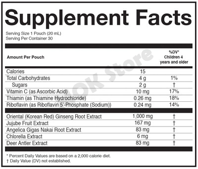 - Stored in easy to open pouches, Korean red ginseng, purified water, and other ingredients will help your child benefit from the properties in ginseng. 30 pouches with 15 ml each are ideal for a strong, healthy immune system.