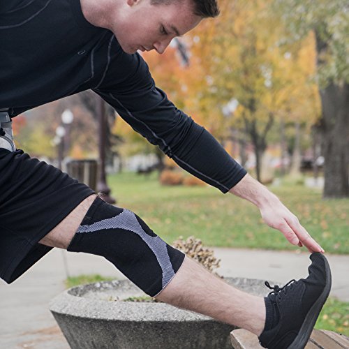 KEEP SLEEVE IN PLACE: Rubber lining at top keeps the knee sleeve in place; Perfect for runners; This brace helps protect your range of motion; It also promotes improved circulation so your muscles are properly oxygenated and can work without sustaining injury;
