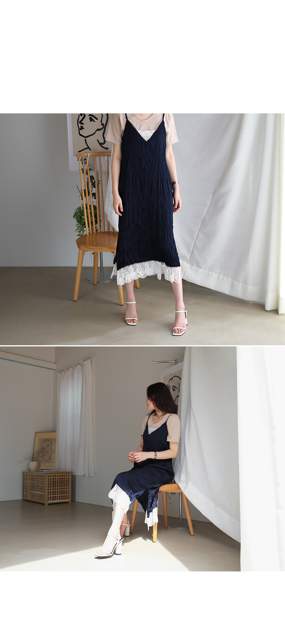 레이스가 덧 대어져 있어 여성스러움을 담은 뷔스티에 타입의 롱원피스를 소개할께요~