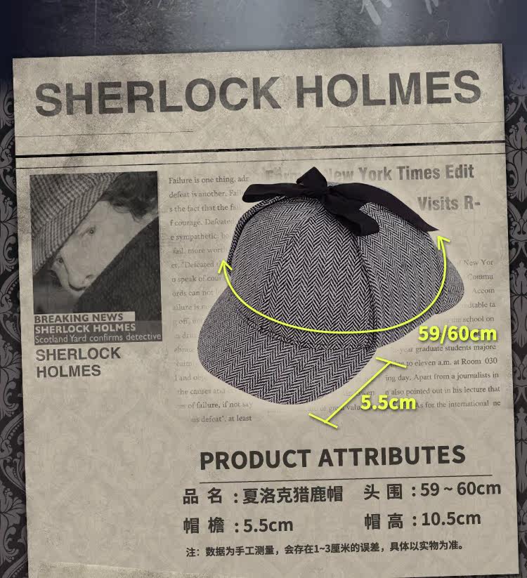神探夏洛克周边福尔摩斯猎鹿帽 卷福同款帽子双沿檐帽
