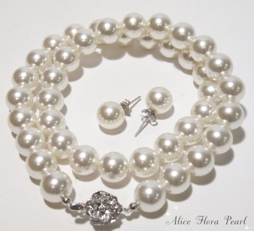 -. Title : 10mm超大粒貝真珠パールセレブネックレス&ピアスセット・ホワイト kai10mm-whp