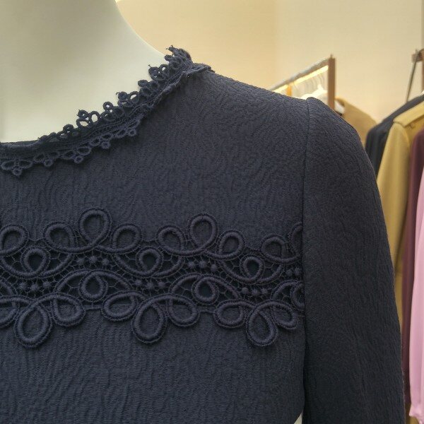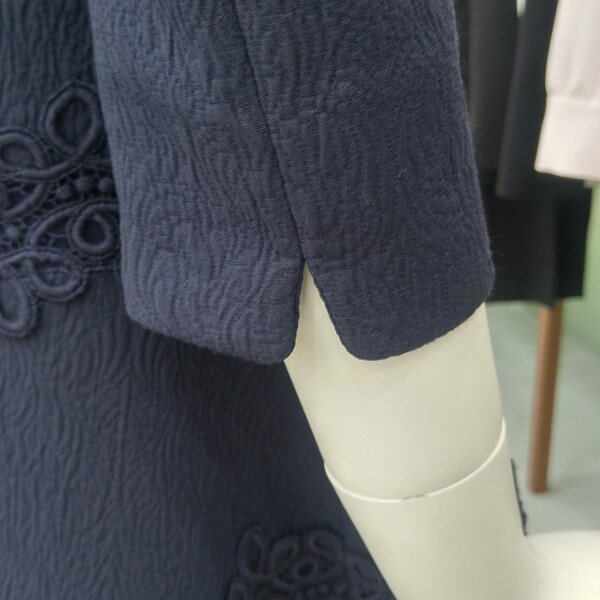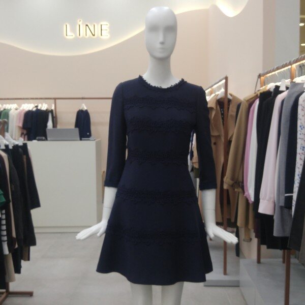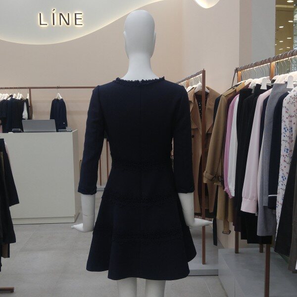 자가드원단에 아일렛자수 레이스로 포인트를 줘서 고급스러움과 발랄하면서도 사랑스러운 느낌을 표현한 품격있는 원피스입니다.