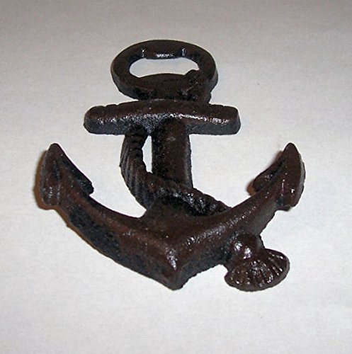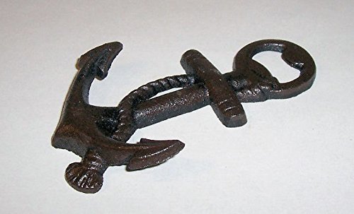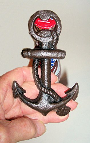 -. Feature : Old vintage style anchor hand held bottle opener - Brings you back to the old days - Anchor opener size: 5-1/4 in High X 3-1/4 in Wide / Made of heavy cast iron - Dark Bronze color - Accented with a rope - With the opener on top of the anchor - Individually hand casted - A tradition handed down over the centuries / Goes great with any home decor - Wall hung outdoor or indoor use - Finished to look like it came from the bottom of the ocean / Opens standard bottle caps - Great for parties, tail gating, kitchen, boats, camping, bar, and more - Great for gift giving - New, ever been used / Note: To see cast iron bottle openers +++ Search on Amazon: ABC Products Cast Iron Bottle Opener