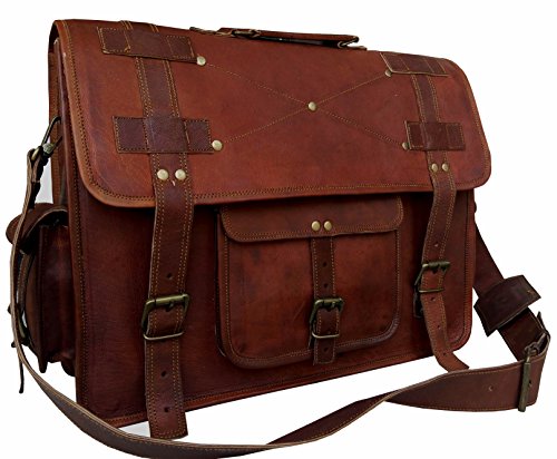 VINTAGE COUTURE 18 Inch leather messenger bags for men women mens briefcase laptop bag best computer shoulder satchel school distressed bag