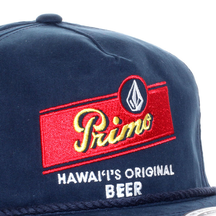 ハワイの老舗ビールブランド "PRIMO BEER / ピリモビアー" とのコラボキャップが登場!! ネイビーに栄える両ブランドのロゴを絶妙なレイアウトでフロントに落とし込み、限定感◎のデザインに仕上がっています。また、バイザーにはさりげないアクセントにロープを施してあり、キャップ好きには堪らない仕様。 普段使いは勿論、バーベキューやレジャー先に被って行けば更に気分が盛り上がりそうなオススメのアイテムです!!