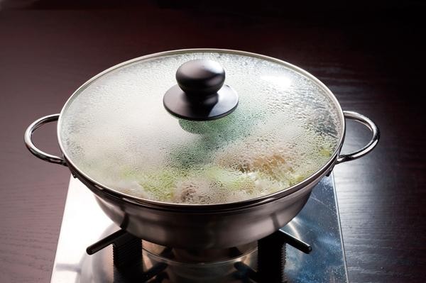 湯気の向こうの食べ頃がわかるガラス蓋。