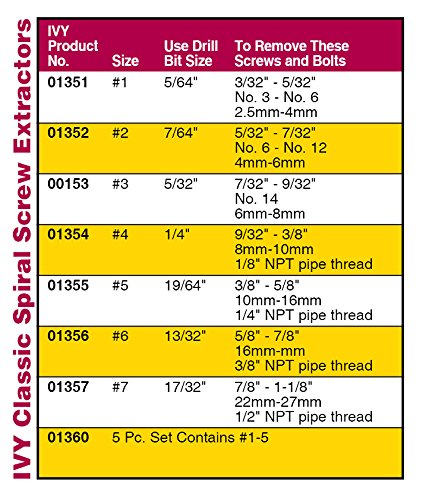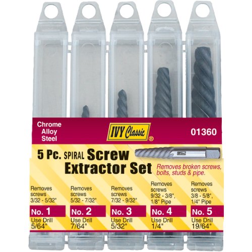 IVY Classic 01360 5-Piece Chrome Alloy-Steel Spiral Screw Extractor Set, Sturdy Plastic Case