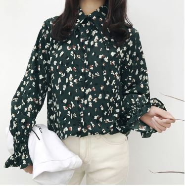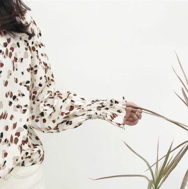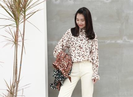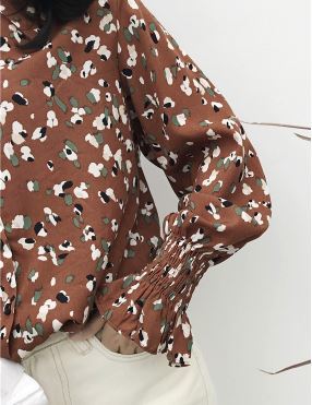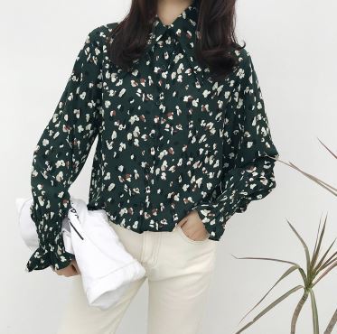 シャーリング袖がフェミニンな今春トレンドの小花柄シャツのご紹介です。