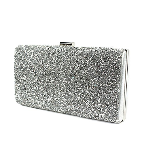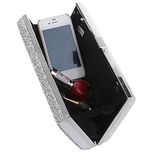 Product Description Take center stage with this shimmering and stylish Nodykka bridal party handbags. This cute and glamorous clutch with clasp closure and rhinestone embossed metallic detail matches perfectly with your dress for dinner or brunch and bride's outfits. It fits easily your keys,id or credit cards, sunglasses, phone(iphone 6 plus), keys, lipstick, comb, tissues, some cashes or small cosmetic case. Detail Color: Black/Silver/Gold/Dark Grey Carrying Option: Detachable metal chain shoulder strap Occasion: Wedding/Cocktail Party/Evening/Prom/Graduation/Gifts fo beloved/For birthday or Christmas present Please note, the hardware color and interior lining may differ from the color shown in the photo. 0