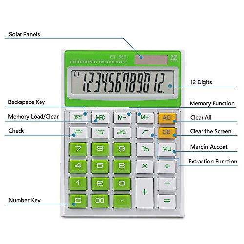 ★ Large Display 12 Digits Liquid crystal display provides large, easy-to-read numbers for maximum viewing comfort.