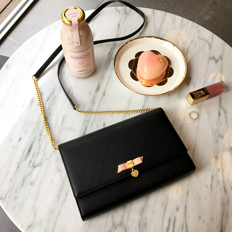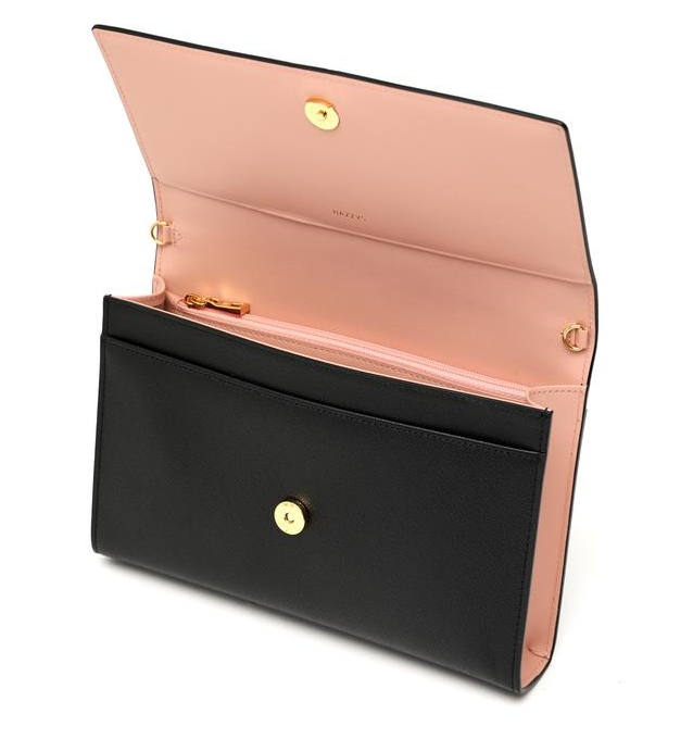 탈부착 가능한 체인 크로스끈이 있어 미니백으로도 활용 가능하며, 내부 배색으로 여성스러움을 살린 아이템 입니다.