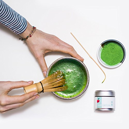 SUPERIOR QUALITY MATCHA: Each Matcha Baby leaf is hand picked by skilled farmers in the Nishio region, Japan in May of each year. Hand selected, de-stemmed, de-veined, air-dried and stone-ground, our organic Matcha powder is shipped to you in airtight containers. It has 1/3 the caffeine of a cup of brewed coffee and provides jitter free natural energy.