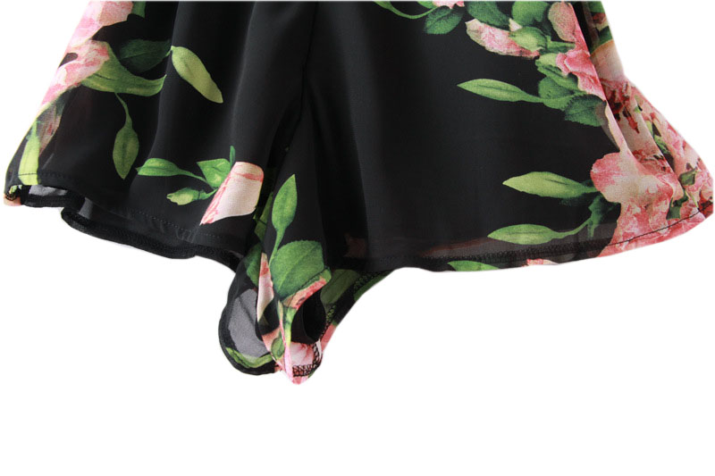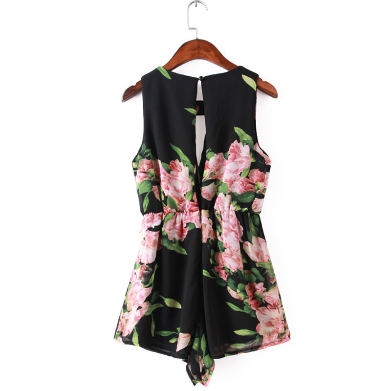 Women Summer Floral Print Sleeveless Backless Chiffon Jumpsuit Short Pant