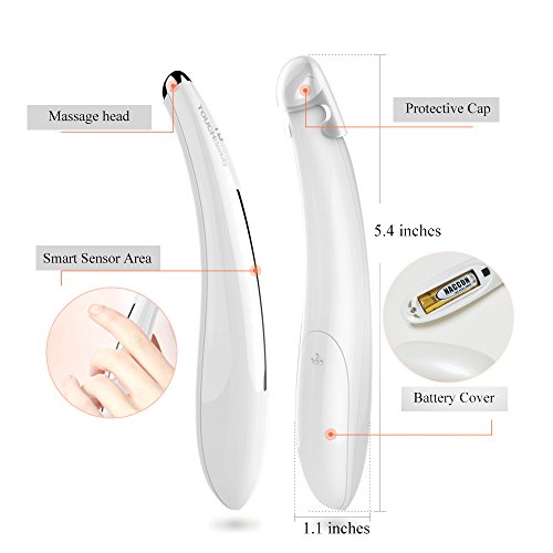 -. Feature : The Anti-wrinkle eye massager uses gentle vibration and 40℃ warmth to relax and soothe the eyes / It relieves dark circles and puffiness around the eyes, eliminates wrinkles / Make skin care product maximize absorption by skin, help to remove acne scar, blemish / The sonic vibration method works with skin's natural elasticity to tighten skin / FDA Registered Eye Massage Wand, TOUCHBeauty Patent Technology Product (Patent NO.201530153674.0)