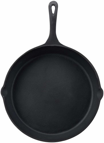 Cast iron construction, Rust resistant black enamel coating, 2 pouring lips to drain fat, Loop handle allows for hanging, Hand wash recommended.