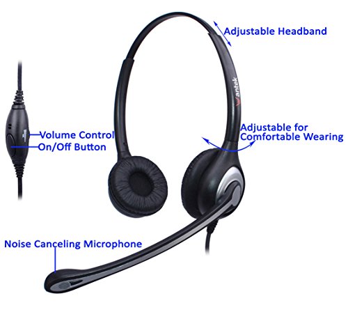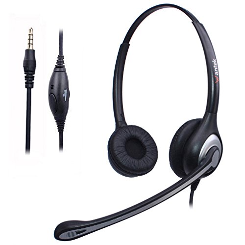Wantek Cell Phone Headset Binaural with Noise Canceling Mic and Adjustable Fit Headband for iPhone Samsung Huawei HTC LG ZTE Blackberry Mobile Phone and Smartphones with 3.5mm Jack(F602J35)