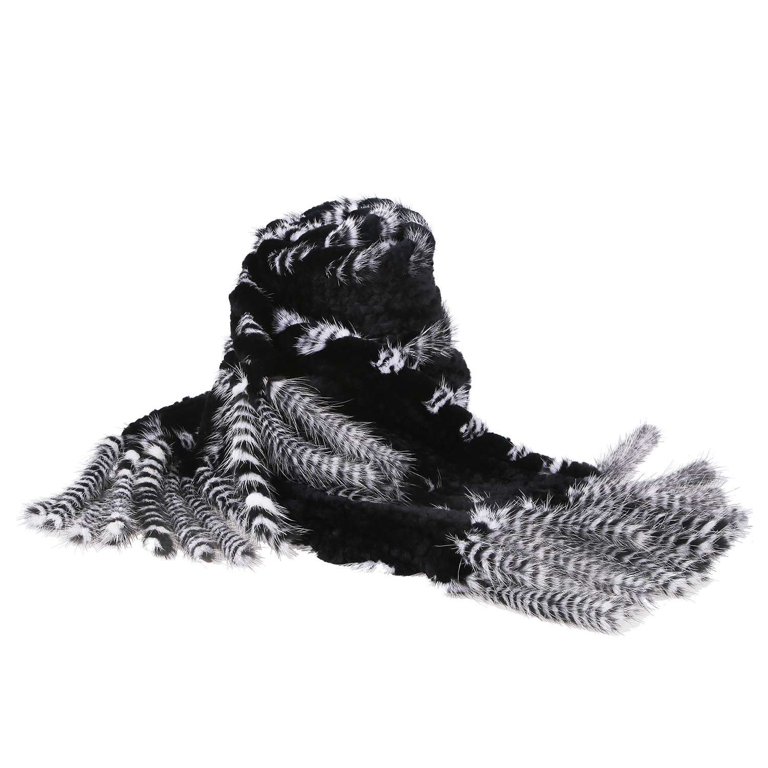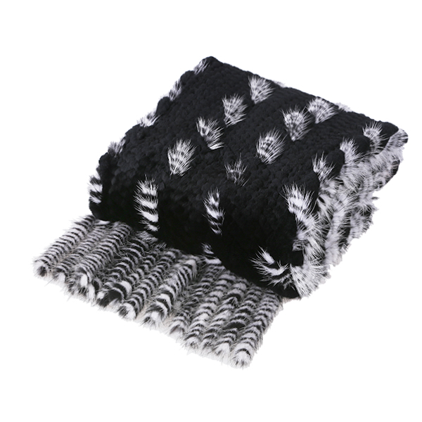이 제품은 블랙과 화이트의 밍크와 렉스래빗의배색으로 매우 부드러운질감과 촉감이 매우 좋은 제품으로