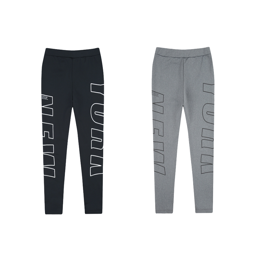 큰 사이즈의 라인 로고가 옆선 양쪽으로 포인트가 된 레깅스.