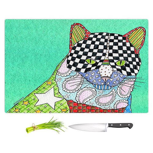 DiaNoche Designs CB-MarleyUngaroCatTeal2 Marley Ungaro Cat Teal Cutting Boards from, Large 15" x 11"