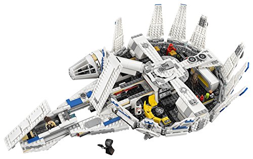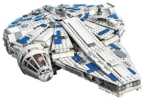 Travel with Han Solo, Chewbacca and their friends with the LEGO Star Wars Kessel Run Millennium Falcon. This LEGO brick version of the iconic Corellian freighter from the Han Solo movie features a 2-minifigure cockpit with detachable canopy, 2 spring-loaded shooters, sensor dish, ramp, rotating top and bottom laser turrets with 2 gunner seats, plus a detachable escape craft. This amazing Star Wars toy also features opening hull plates for easy access to the detailed interior, which includes a cargo area with couch and Dejarik hologame table, bar, bunk, missile storage compartment, and a buildable hyper drive with repair tools. Also includes 6 minifigures and a DD-BD droid.Feature