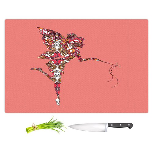 DiaNoche Designs CB-SusieKunzFairyFlowersPink2 Susie Kunzelman Fairy Flowers Pink Cutting Boards from, Large 15" x 11"